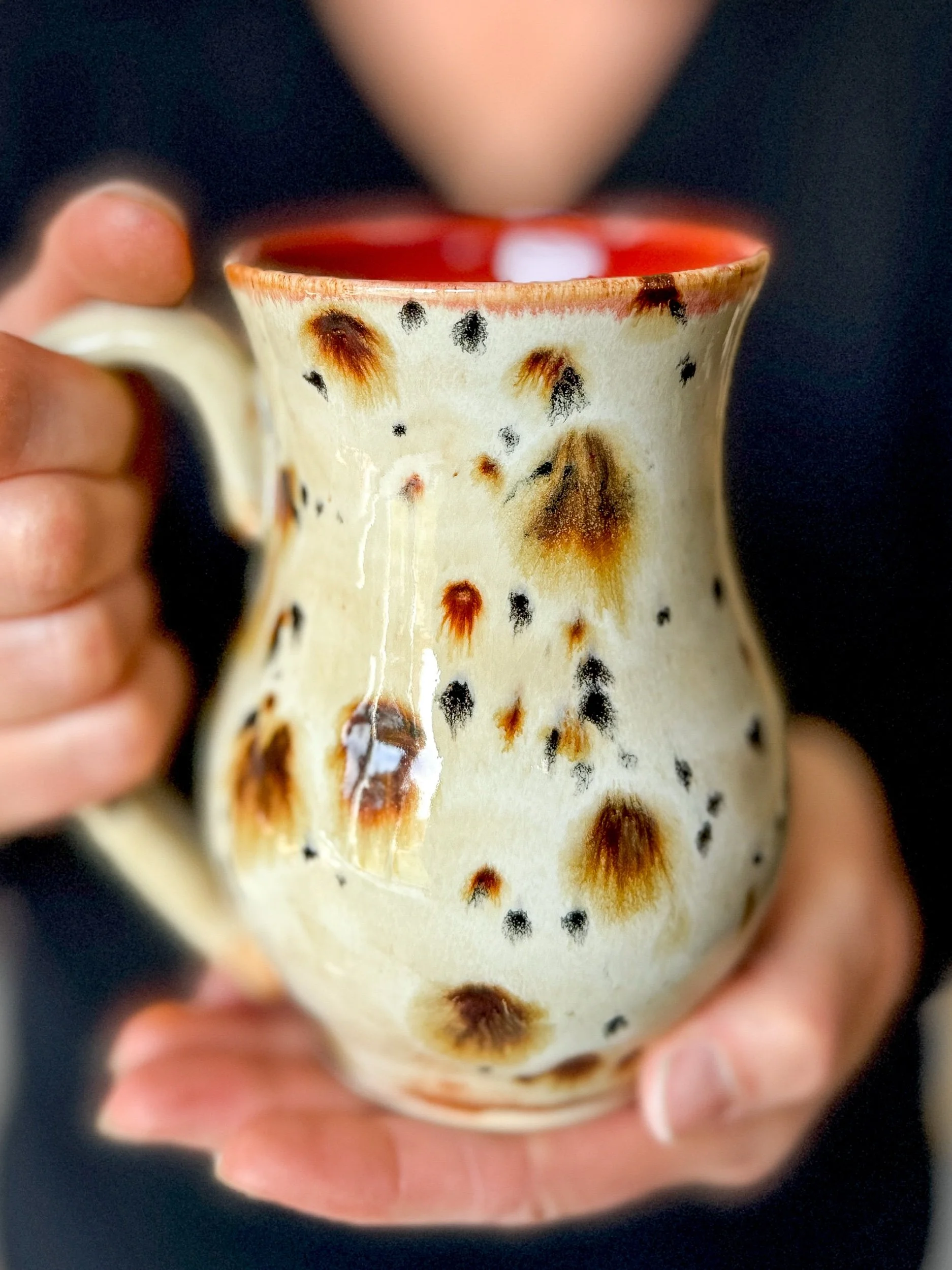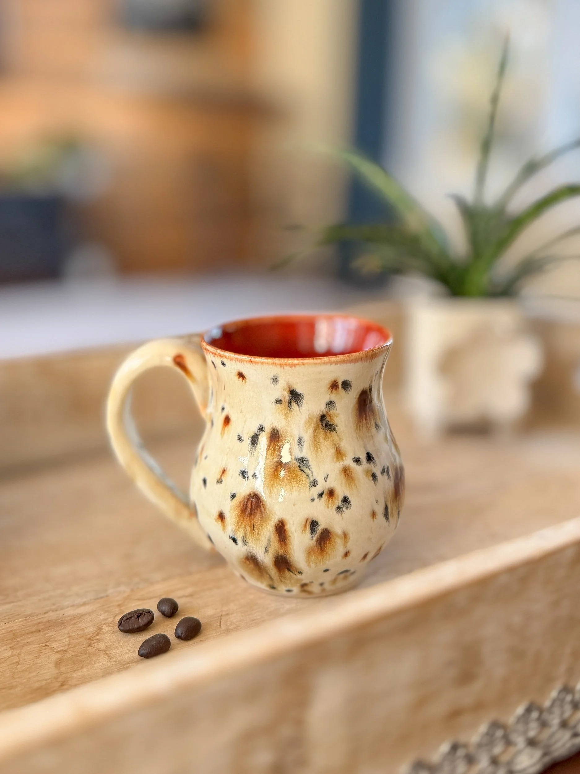 Our wheel thrown pottery mug is a testament to meticulous attention to detail. Crafted on a potter's wheel, this mug boasts a perfectly rounded shape that fits comfortably in your hands. The smooth, tactile surface invites you to experience the mug with all your senses. Each mug showcases beautiful, natural variations in color and texture, giving it an organic and rustic appeal.