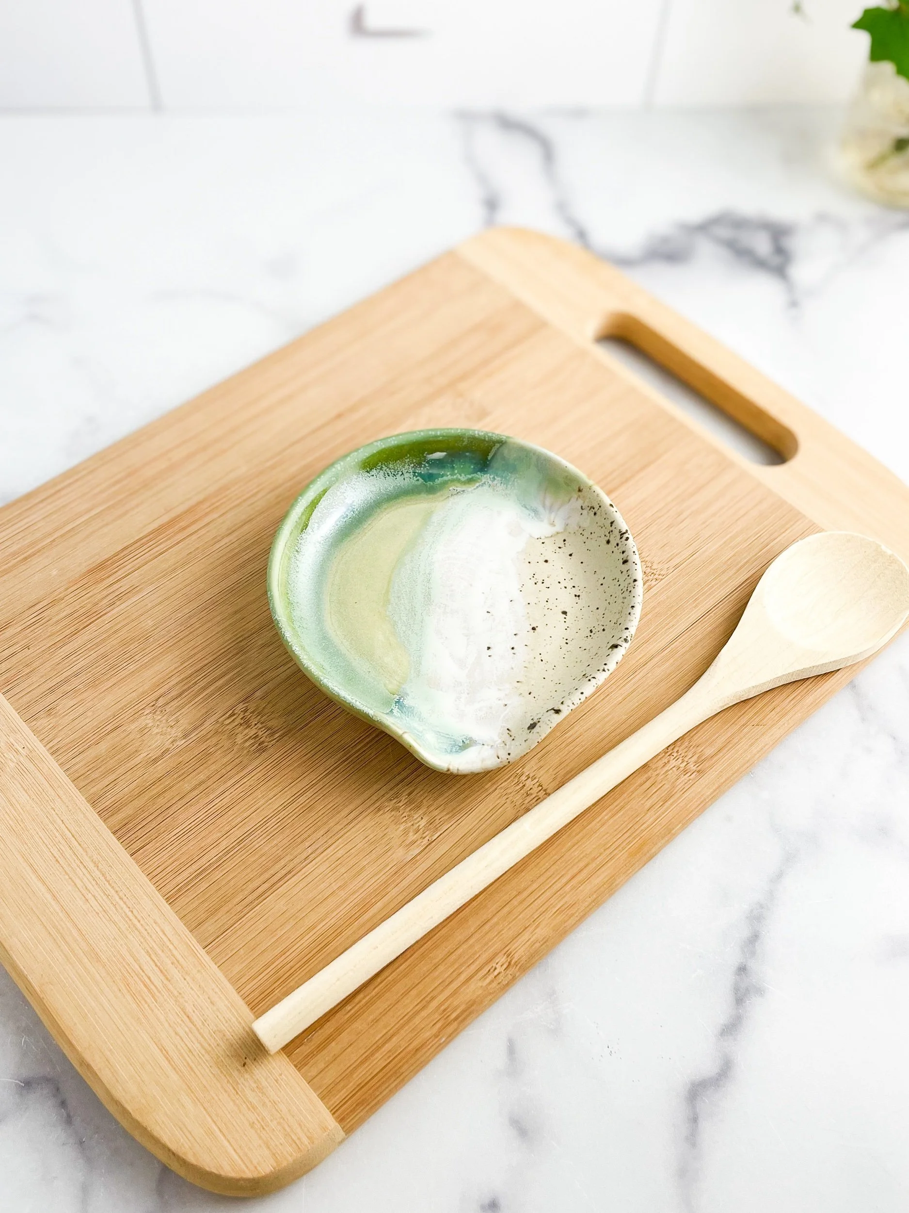 Beautiful spoon rest to catch all the drips or simply for decor. Spoon rests are made on the wheel and painted with food safe glazes.