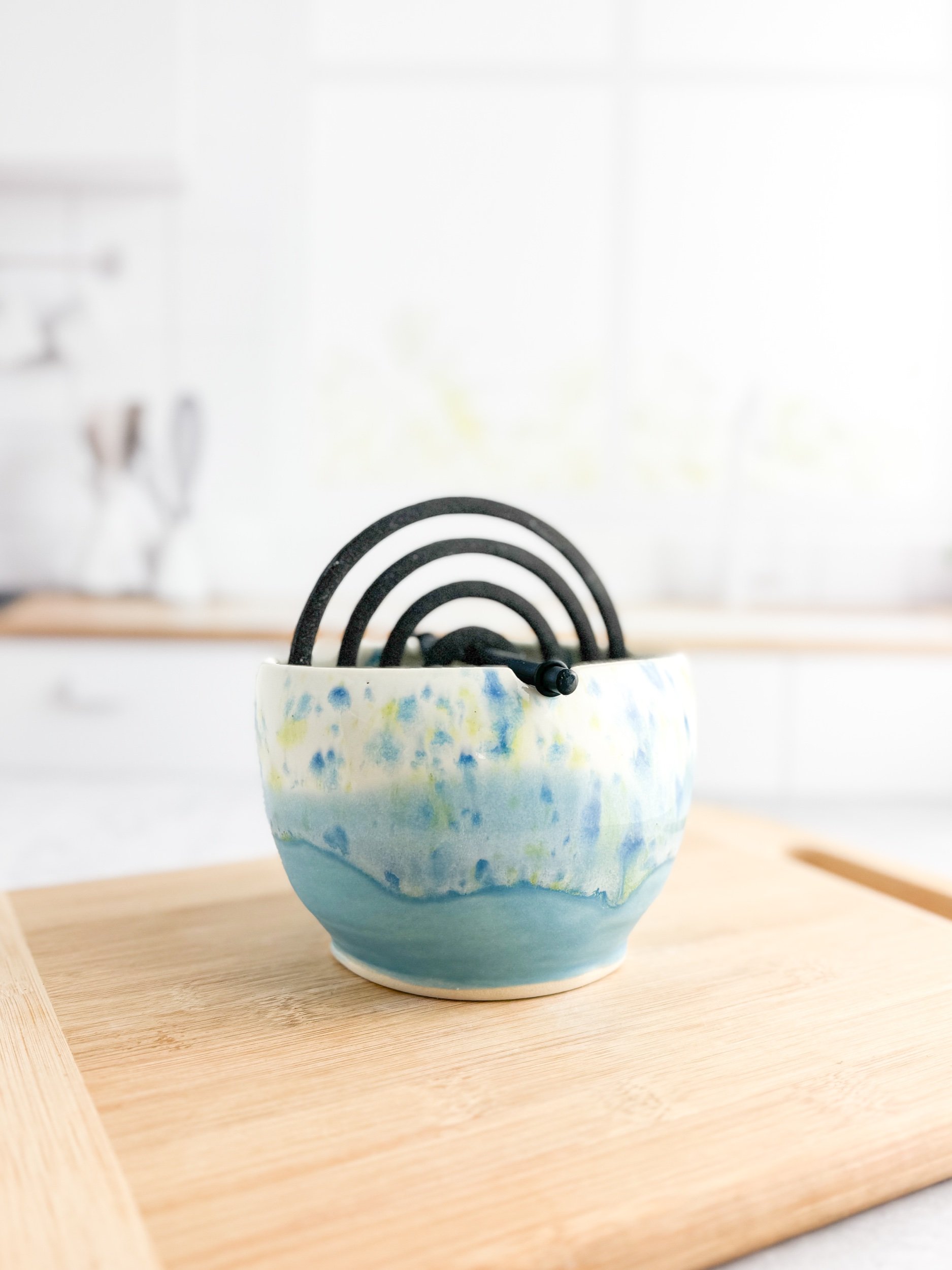 These Mosquito bowls are dual purpose not only are they beautiful and add a splash of color to your outdoor living area, they also keep the mosquitos at bay! The bowls have drainage holes so that when it rains they will not fill up with water. The bowl also collects all the ash from the coil, simple wash out with water or put in your dishwasher!