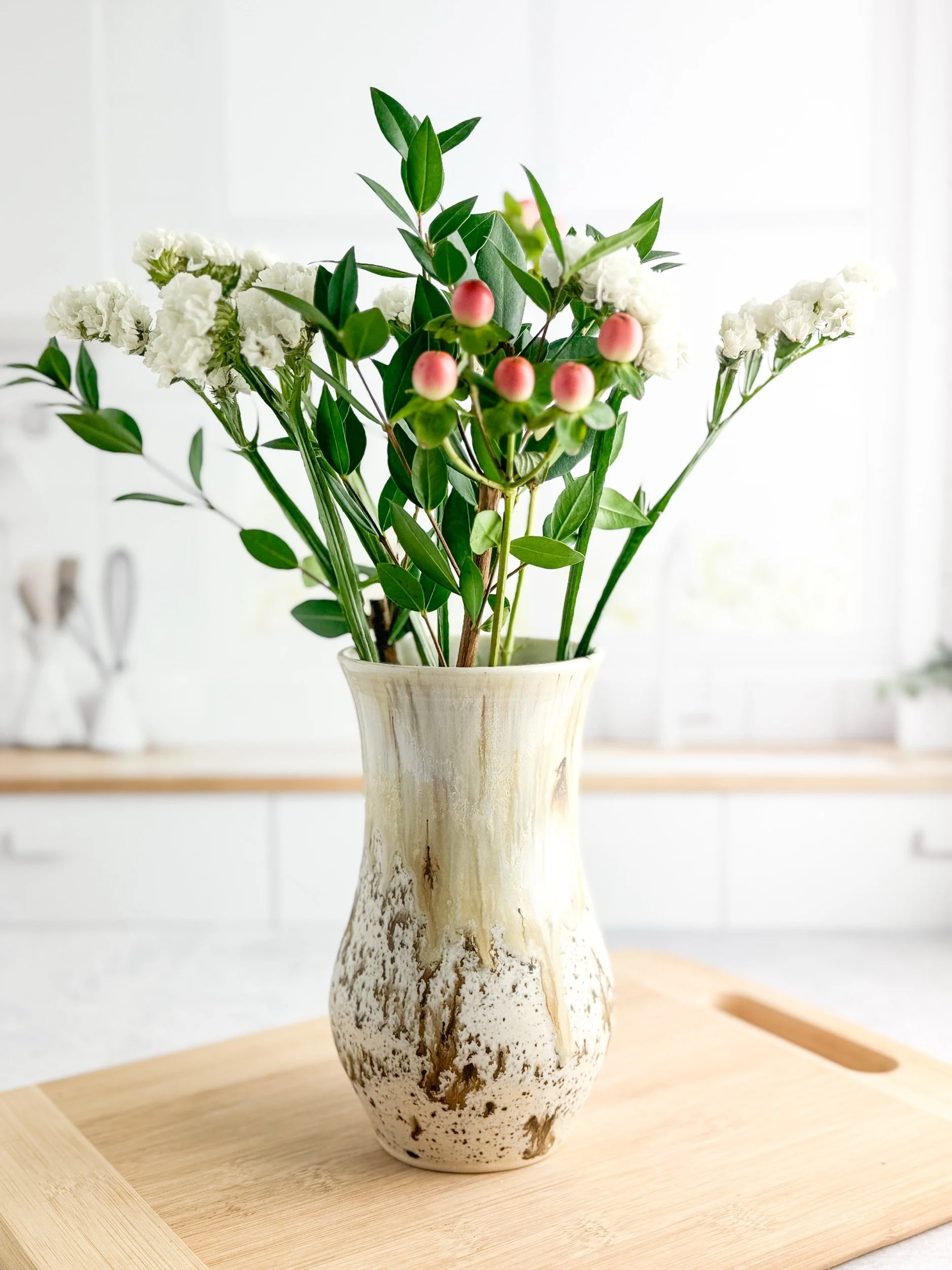 This absolutely stunning vase would look perfect in any room in your house to display dry or fresh flowers.