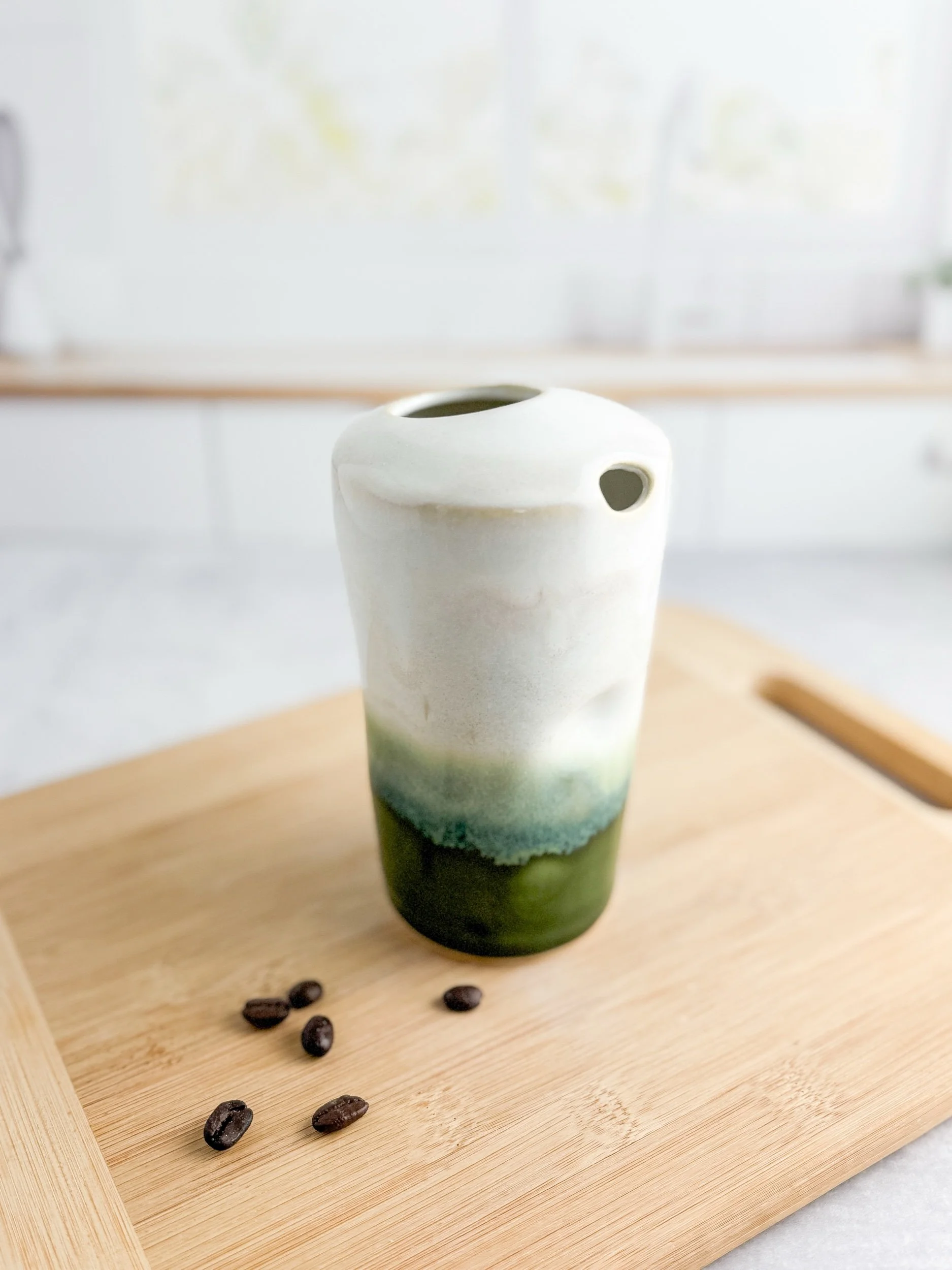 Our wheel thrown pottery mug is a testament to meticulous attention to detail. Crafted on a potter's wheel, this mug boasts a perfectly rounded shape that fits comfortably in your hands. The smooth, tactile surface invites you to experience the mug with all your senses. Each mug showcases beautiful, natural variations in color and texture, giving it an organic and rustic appeal.