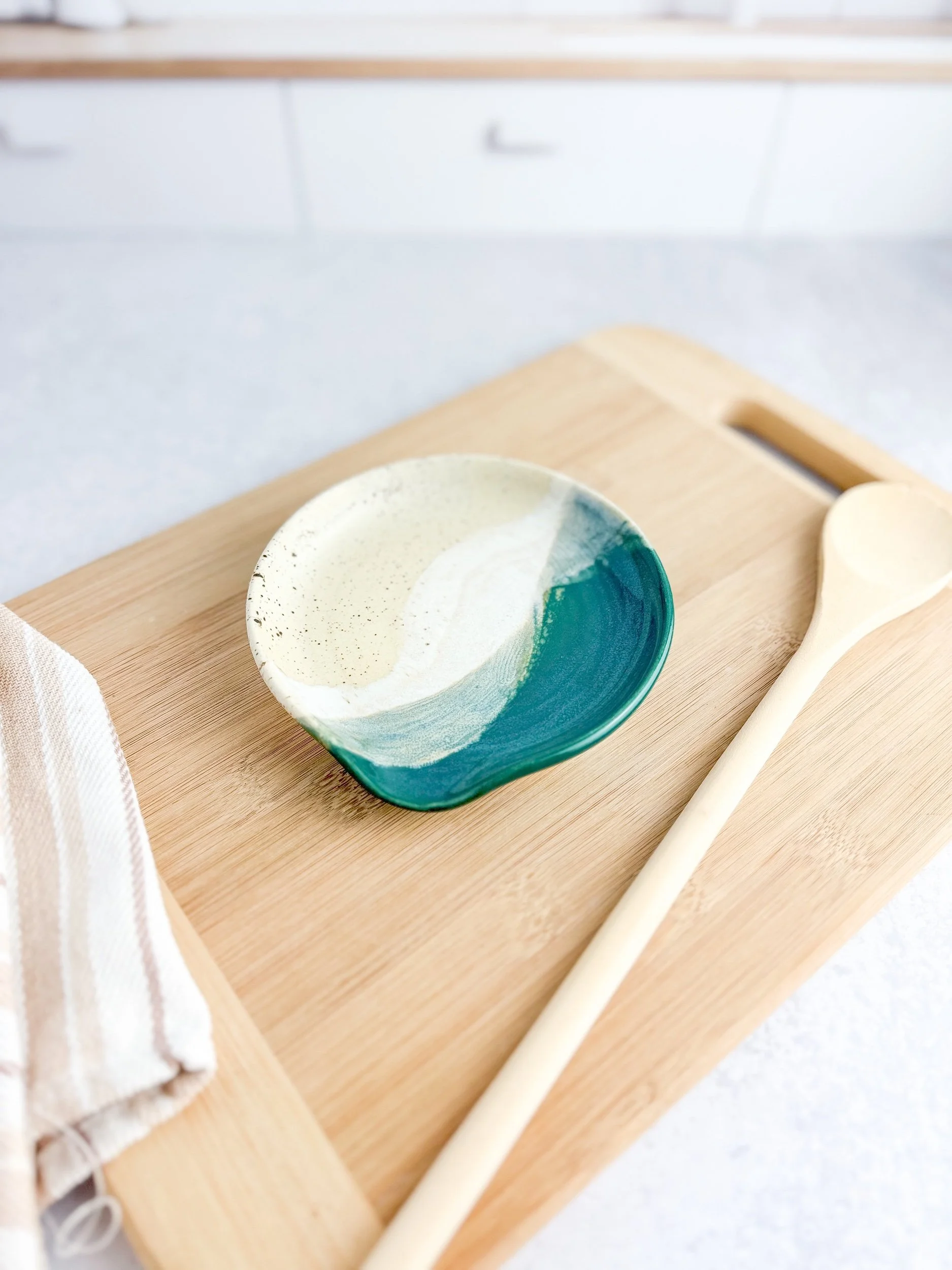 Beautiful spoon rest to catch all the drips or simply for decor. Spoon rests are made on the wheel and painted with food safe glazes.
